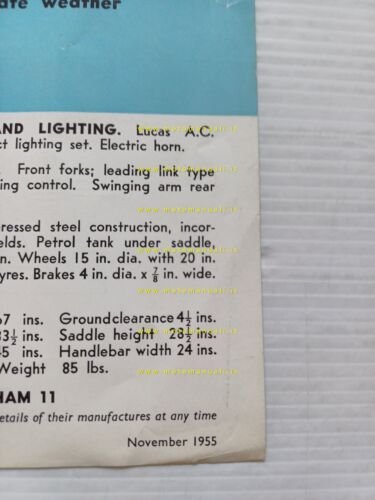 BSA Dandy 70 1955 depliant INGLESE originale