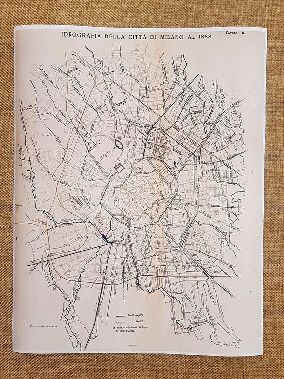 Carta Idrografica Città di Milano Anno 1888 Franc. Vallardi cm 32 x 42 Ristampa