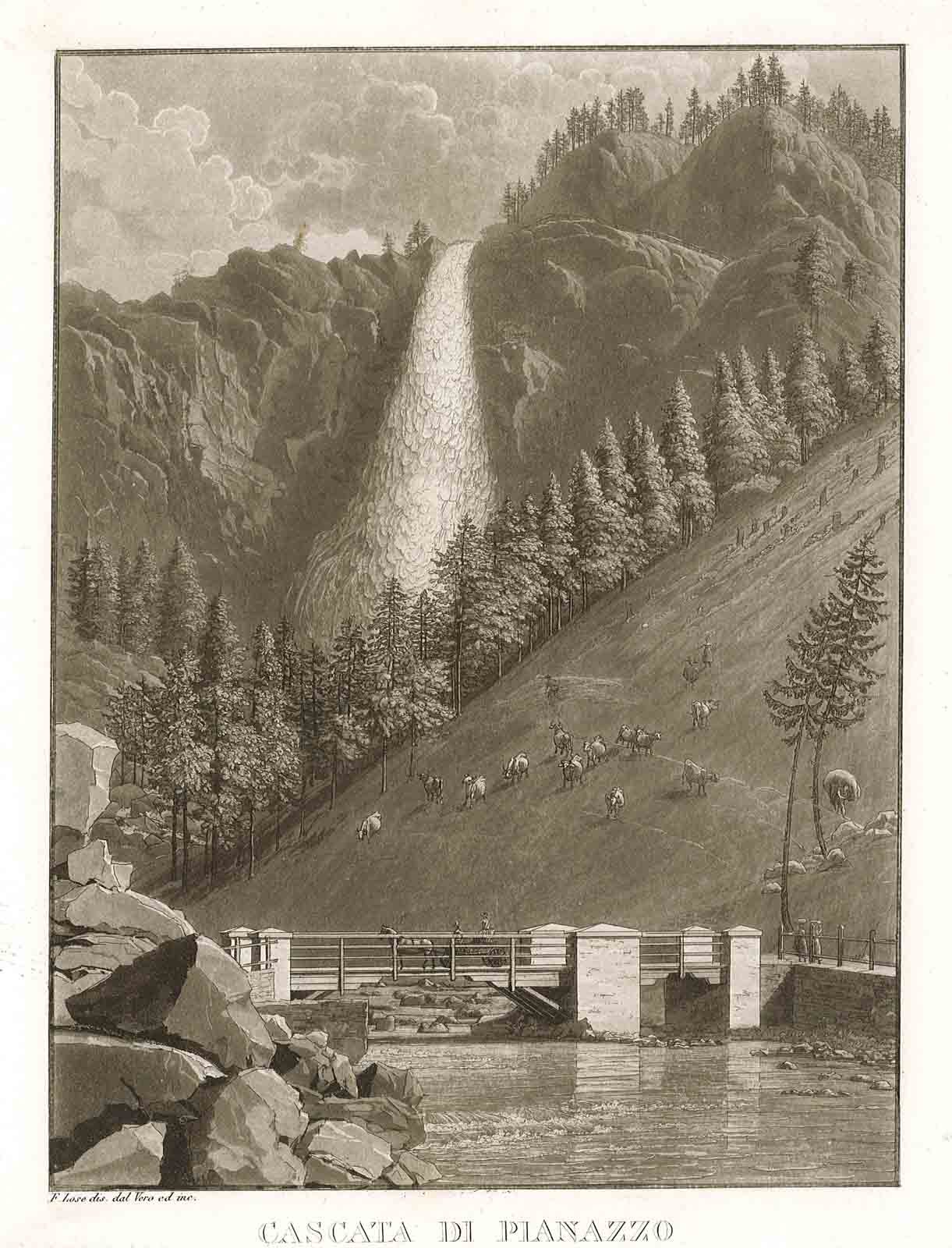 Rara veduta della cascata di Pianazzo. In primo piano il ponticello sul torrente Liro