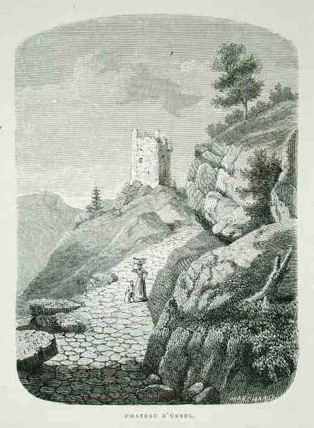 Veduta del castello di Ussel. Tratta dall'opera " La Vallée d'Aoste " stampata a Parigi da Amyot
