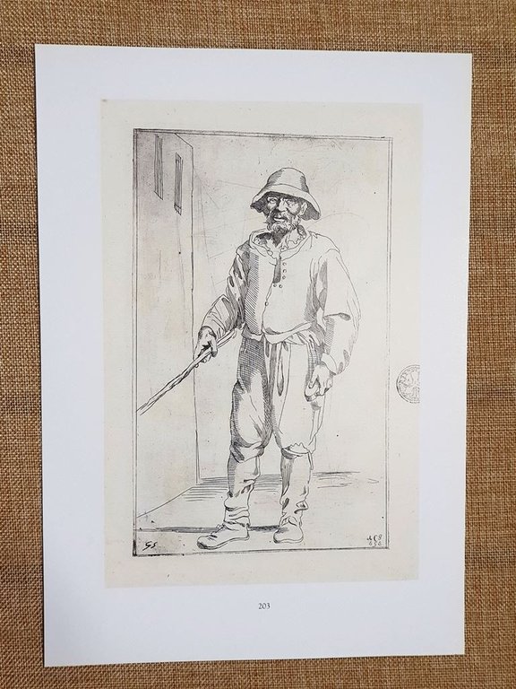Cieco dal rimedio per calli e Stecca legna Tavola 1646 Carracci Bologna Ristampa