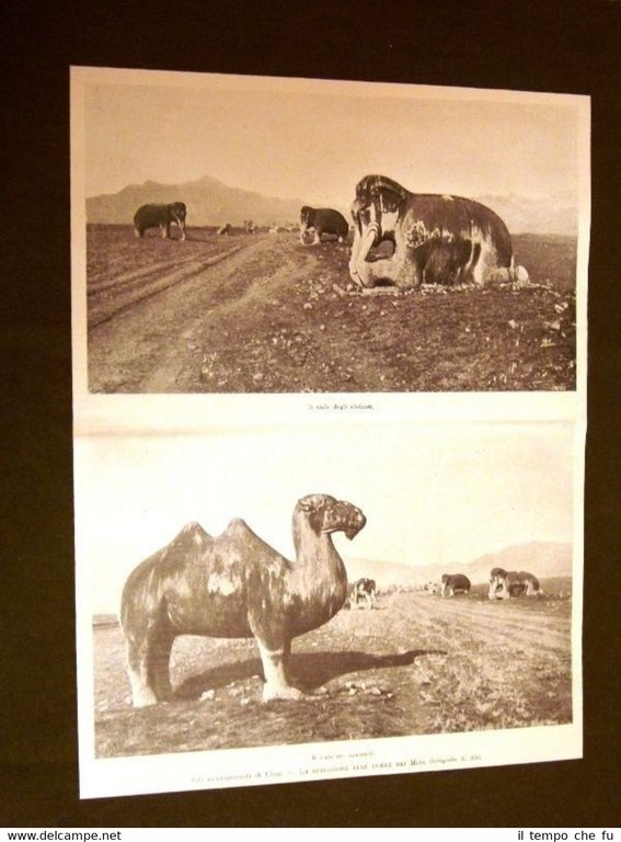 Rara Stampa Estratta da Rivista d'Epoca del 1900 Cina nel 1900 Tombe dei Ming Viale degli elefanti e dei cammelli II1900-044T Dimensioni Cm 22,50 x 14,00 Qualora vogliate delle scansioni migliori contattateci, soddisferemo ogni vostra richiesta. Paypal Carta di credito Bonifico bancario Accuratamente adagiate su un cartoncino e protette da pellicola trasparente rigida il tutto viene inserito dentro plico di adeguate dimensioni per proteggerne l'integrità