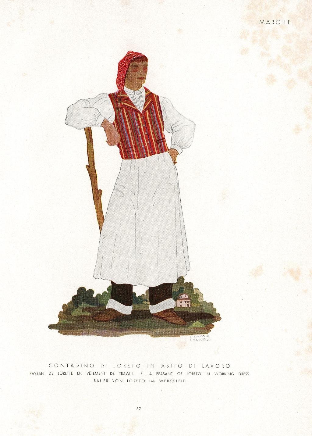 Stampa antica e originale raffigurante il costume caratteristico del luogo. Autore: Calderini Emma. Luogo: Loreto. Anno: 1920. Tecnica: tipolitografia. Dimensioni: 210x130. Tratta dall'opera " Il costume popolare in Italia " edita a Milano da Sperling & Kupfer