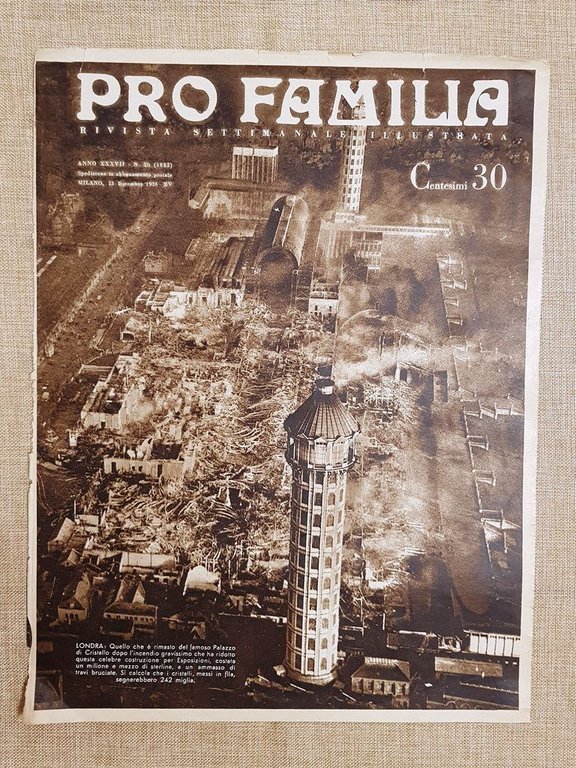 Copertina Pro Familia del 1936 Londra Dopo l'incendio del Palazzo di Cristallo