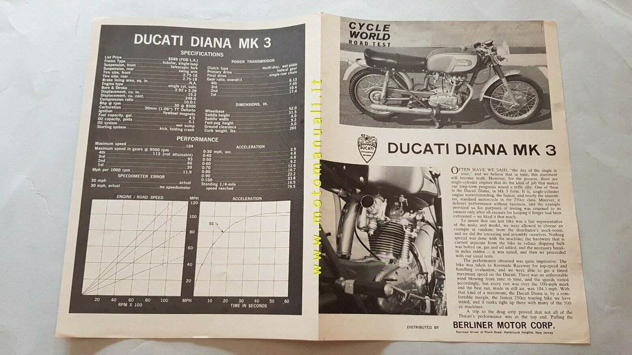 Ducati 250 Diana Mark 3 1964 ristampa prova Cycle World depliant originale