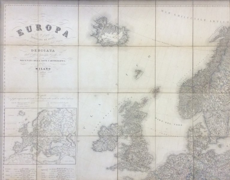 EUROPA. - Disegnata ed incisa in 16 fogli, sotto la direzione del Capitano Ferd. Arrigoni. Dedicata dallEditore Giuseppe Civelli e C. ai mecenati dellarte cartografica.