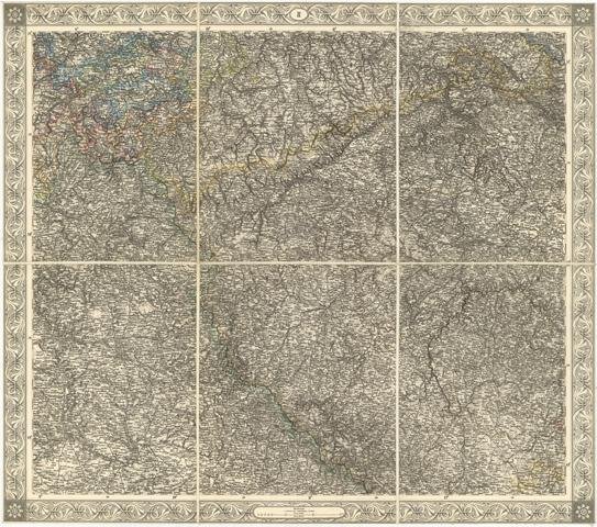 Carta geografica, antica ed originale, telata piegata editorialmente con coloritura coeva ai confini. Foglio nr 2 con elaborata cornice al margine comprendente il territorio delle città di: Erfurt, Weimar, Jena, Zeitz, Gera, Ronneburg, Rudolstadt, Greiz, Schleiz, Plauen, Hof, Baireuth, Altenburg, Grimitzschau, Glauchau Werdau, Zwickau, Hohenstein, Chemnitz, Dresden, Schirgiswalde, Eibenstock, Litomerice, Prag, Amberg, Regensburg, Ingolstadt, Plzen, Klattau, Taus, Straubing, Pribram, Tabor, Wittingau. Autore: Scheda, Franz Josef von. Luogo: Polonia - Germania. Anno: 1856. Tecnica: incisione in rame. Dimensioni: 490x560 mm
