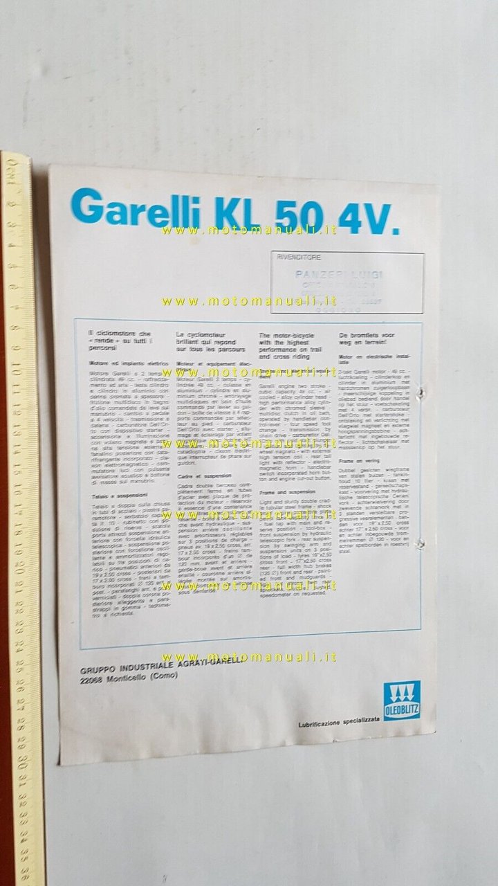 Garelli KL 50 4V 1973 depliant italiano originale brochure