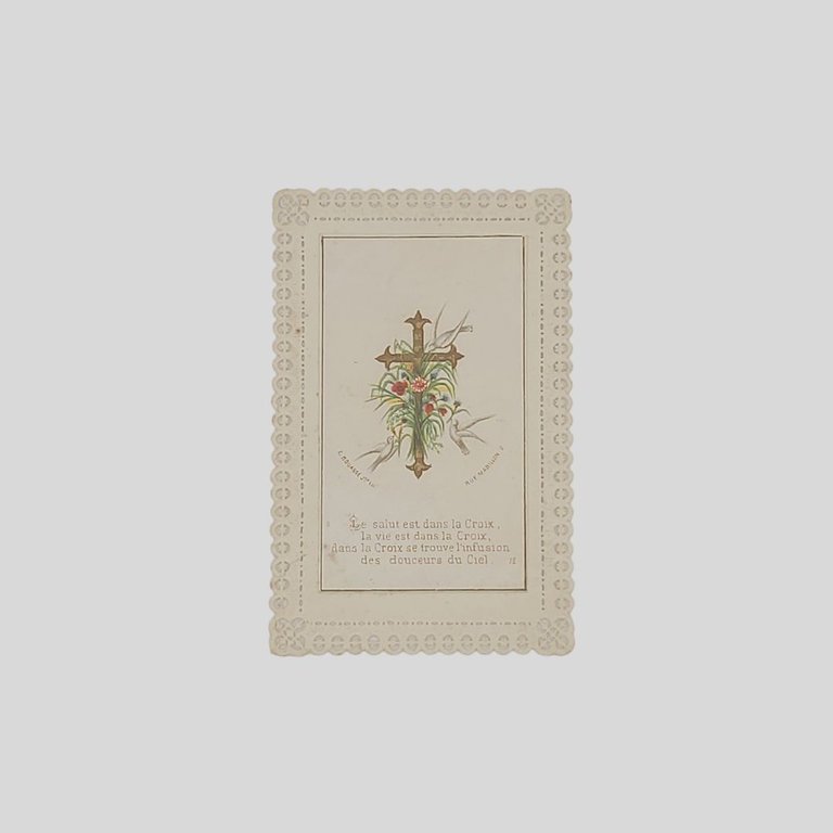 Santino d’epoca bordo in merletto. Paris, E. Bouasse, s.d. (sec XIX) cm 6,5×10,2. In buone condizioni.