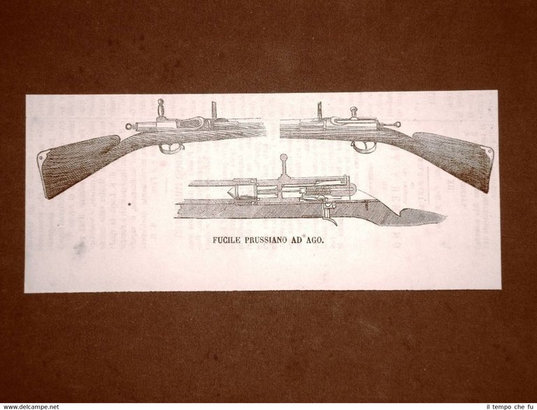 Rara Incisione Estratta da Rivista d'epoca del 1866 . .incisione che ha quindi oltre 150 anni! Guerra Austria vs Prussia nel 1866 Fucile ad ago dell'esercito di Prussia EP1866-014 Dimensioni Cm 22,00 x 9,00 Qualora vogliate delle scansioni migliori contattateci, soddisferemo ogni vostra richiesta. PaypalCarta di creditoBonifico bancario Accuratamente adagiate su un cartoncino e protette da pellicola trasparente rigida,il tutto viene inserito dentro plico di adeguate dimensioni per proteggerne l'integrità.