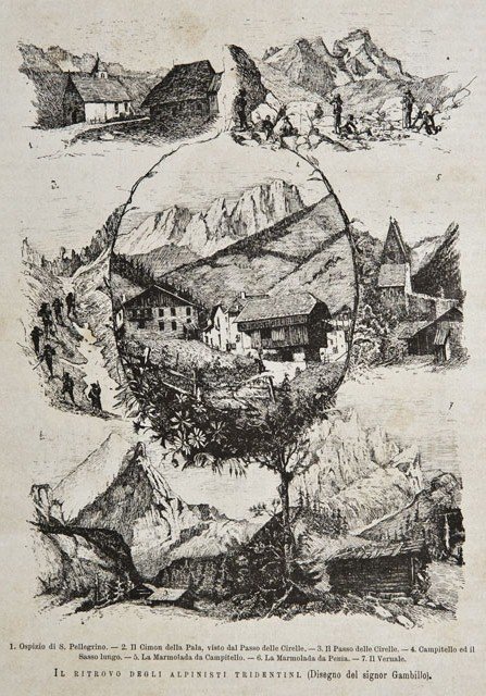 Il ritrovo degli alpinisti tridentini. Ospizio di S. Pellegrino - Il Cimon della Pala - Il Passo delle Cirelle - Campitello .- La Marmolada . - Il Vernale