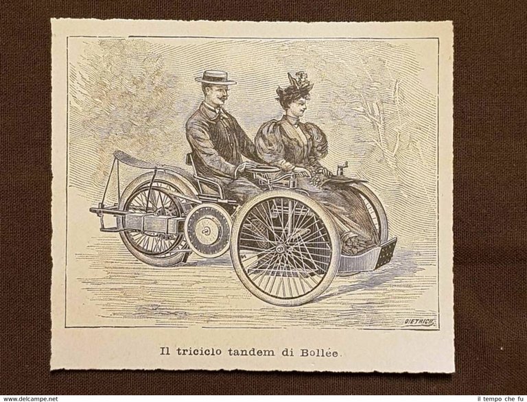 Il triciclo tandem di Bollée nel 1896 Velocipede Velocipedi o Bicicletta