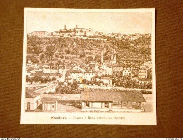 Incisione del 1891 Mondovì, Piazza e Breo veduta da ponente - Piemonte