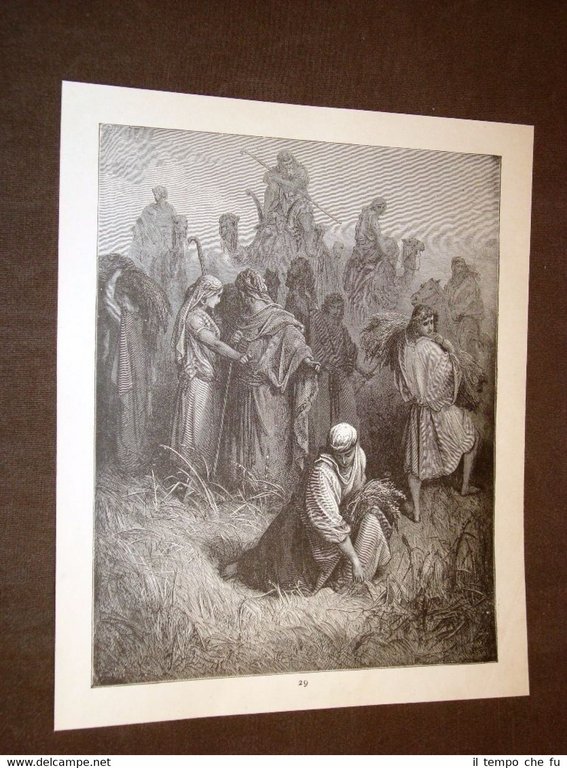 Incisione di Gustave Dorè del 1880 Bibbia Booz e Ruth Bible Engraving
