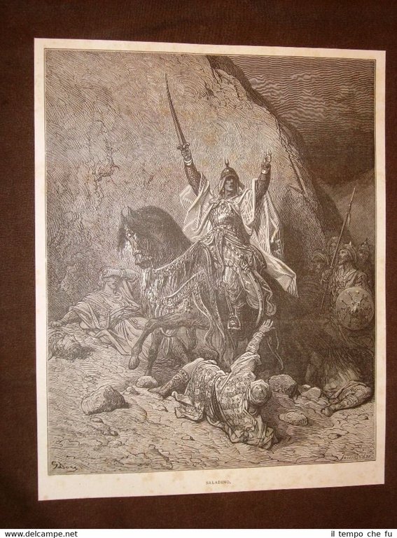 Incisione di Gustave Dorè del 1884 Il Sultano d'Egitto Saladino Crociata