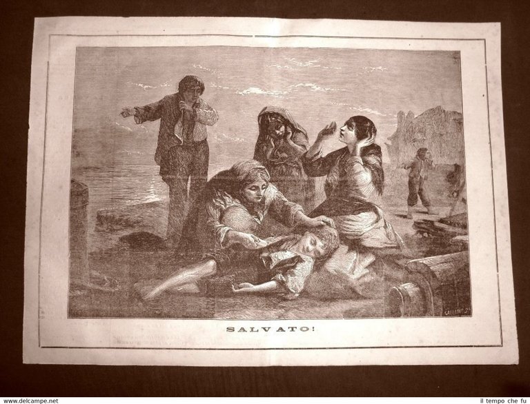Incisione enorme del 1866 Salvato! Composizione di Gallieni