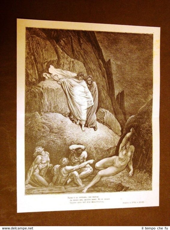 Incisione Gustave Dorè del 1880 La Taide di Terenzio Dante' Inferno Engraving
