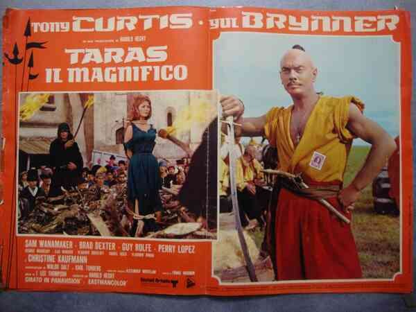 J. Lee Thompson (regista) Tony Curtis -Yul Brynner in "Taras il Magnifico" Fotobusta cinematografica. Con Sam Wanamaker, Brad Dexter, Guy Rolfe, Perry Lopez e Christine Kaufmann (49b/56b).