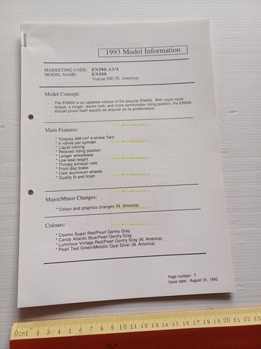 Kawasaki EN 500 (EN500-A3.A4) 1993 Model Information cartella stampa inglese