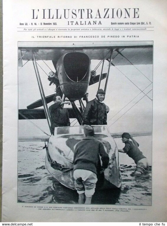 L'Illustrazione Italiana Rivista originale del 15 Novembre 1925 Anno 52 - N. 46 Rarità per appassionati e collezionisti Segue sotto solamente un saggio del ricco contenuto presente Illustrato in copertina (segue foto): Il trionfale ritorno di Francesco De Pinedo in patria Illustrazione presente nelle pagine interne (segue foto): Il trionfale arrivo di Francesco De Pinedo a Roma Altra Illustrazione presente nelle pagine interne (segue foto): Lo sventato complotto contro Benito Mussolini Tra gli argomenti trattati e le notizie contenute: Il passaggio di De Pinedo in Giappone e in Cina L'arrivo di De Pinedo a Taranto La partenza dell' "Alcione" per il raid Italia-Argentina Il solenne ingresso del principe ereditario a Torino L'eroica difesa del monte Festa celebrata a Osoppo il 4 novembre Come fu affondata la corazzata austriaca "Wien" Nel terzo centenario del Monte dei Paschi di Siena .e tanto altro ancora! Qualora vogliate maggiori delucidazioni contattateci. In questo negozio troverai un'intera categoria dedicata alla collezione dell'Illustrazione Italiana , ne inseriamo diverse giornalmente. Sotto il link diretto a tutta la collezione: Riviste disponibili Cliccaci sopra, troverai di certo ciò che cerchi! L'illustrazione Italiana è stata una rivista settimanale italiana con sede a Milano, pubblicata ininterrottamente dal 1873 al 1962 per un totale di quasi 5 000 numeri. Fondata a Milano con la testata «Nuova illustrazione universale», fu edita dalla casa editrice Fratelli Treves, fondata da Emilio Treves, il quale fu anche il primo direttore della rivista. L'illustrazione italiana comincia ad avere un'ampia diffusione negli ambienti della medio-alta borghesia, grazie alla qualità degli articoli e soprattutto delle illustrazioni, spesso affidate ad artisti di primo piano come Achille Beltrame, Pietro Scoppetta, Luigi Bompard, Giuseppe Cosenza ed Ettore Ximenes (il quale svolgeva anche le funzioni di vicedirettore), tale qualità fu mantenuta poi nel tempo anche in seguito all'avvento della fotografia, tecnica che vide rappresentati sulle pagine dell'«Illustrazione» alcuni tra i migliori fotogiornalisti nazionali: Armando Bruni, Mario Crimella, Giulio Parisio ed Emilio Sommariva. Per i testi il periodico si avvalse della collaborazione, in qualità di articolisti, di alcuni dei nomi più importanti della letteratura italiana, fra cui ricordiamo Giosuè Carducci, Grazia Deledda e Luigi Pirandello (premi Nobel per la letteratura), lo scrittore verista Giovanni Verga, il poeta Gabriele D'Annunzio, il critico letterario e favolista Luigi Capuana ed Edmondo De Amicis, autore del celeberrimo romanzo "Cuore", capolavoro della letteratura per ragazzi. La grande fortuna dell'Illustrazione Italiana durò fino alla morte di Emilio Treves (1916), dopo la quale, pur avendo ancora tra i propri collaboratori scrittori del calibro di Eugenio Montale, Elio Vittorini, Salvatore Quasimodo, Riccardo Bacchelli, Italo Pietra, Niccolò Giani e Sergio Solmi, la rivista cominciò a mostrare i segni di un lento declino. La promulgazione delle leggi razziali fasciste accelerò il processo in atto: nel 1939 la Treves dovette cedere l'azienda alla Garzanti. Verso la metà del 1942, in seguito agli eventi della seconda guerra mondiale, L'illustrazione rallentò le sue uscite, fino ad essere trasformata in mensile nel 1951 da Livio Garzanti. Gli anni cinquanta videro la crescita vertiginosa dei rotocalchi, settimanali popolari di attualità. «L'Illustrazione Italiana» vide ridursi progressivamente il suo spazio, finché Garzanti la chiuse nel 1962. L'editore Guanda riprese la testata alla fine del 1981 e la ripubblicò con periodicità bimestrale. Il tentativo non incontrò sufficiente fortuna e la rivista fu chiusa nel 1996. Paypal Carta di credito Bonifico bancario Spedizione con posta ordinaria o raccomandata scelta dall'Acquirente nel momento del pagamento