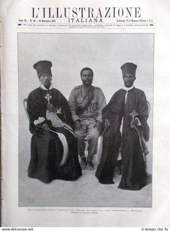 L'Illustrazione Italiana Rivista originale del 16 Novembre 1913 Anno 40 - N. 46 Rarità per appassionati e collezionisti Segue sotto solamente un saggio del ricco contenuto presente Illustrato in copertina (segue foto): Due sacerdoti copti addetti agli Ascari Eritrei e il loro interprete a Bengasi Illustrazione presente nelle pagine interne (segue foto): Ritratto di sua maestà Vittorio Emanuele III Altra Illustrazione presente nelle pagine interne (segue foto): Il grave disastro ferroviario di Melun presso Parigi Tra gli argomenti trattati e le notizie contenute: Il riconoscimento della repubblica Cinese Il conflitto tra gli Stati Uniti e il Messico Un gruppo storico della famiglia dell'imperatore Guglielmo Gli ufficiali dei distaccamenti internazionali a Scutari d'Albania I nuovi scavi di Giacomo Boni sul Colle Palatino La conferenza internazione dell'ora a Parigi - l'ora esatta della Torre Eiffel .e tanto altro ancora! Qualora vogliate maggiori delucidazioni contattateci. In questo negozio troverai un'intera categoria dedicata alla collezione dell'Illustrazione Italiana , ne inseriamo diverse giornalmente. Sotto il link diretto a tutta la collezione: Riviste disponibili Cliccaci sopra, troverai di certo ciò che cerchi! L'illustrazione Italiana è stata una rivista settimanale italiana con sede a Milano, pubblicata ininterrottamente dal 1873 al 1962 per un totale di quasi 5 000 numeri. Fondata a Milano con la testata «Nuova illustrazione universale», fu edita dalla casa editrice Fratelli Treves, fondata da Emilio Treves, il quale fu anche il primo direttore della rivista. L'illustrazione italiana comincia ad avere un'ampia diffusione negli ambienti della medio-alta borghesia, grazie alla qualità degli articoli e soprattutto delle illustrazioni, spesso affidate ad artisti di primo piano come Achille Beltrame, Pietro Scoppetta, Luigi Bompard, Giuseppe Cosenza ed Ettore Ximenes (il quale svolgeva anche le funzioni di vicedirettore), tale qualità fu mantenuta poi nel tempo anche in seguito all'avvento della fotografia, tecnica che vide rappresentati sulle pagine dell'«Illustrazione» alcuni tra i migliori fotogiornalisti nazionali: Armando Bruni, Mario Crimella, Giulio Parisio ed Emilio Sommariva. Per i testi il periodico si avvalse della collaborazione, in qualità di articolisti, di alcuni dei nomi più importanti della letteratura italiana, fra cui ricordiamo Giosuè Carducci, Grazia Deledda e Luigi Pirandello (premi Nobel per la letteratura), lo scrittore verista Giovanni Verga, il poeta Gabriele D'Annunzio, il critico letterario e favolista Luigi Capuana ed Edmondo De Amicis, autore del celeberrimo romanzo "Cuore", capolavoro della letteratura per ragazzi. La grande fortuna dell'Illustrazione Italiana durò fino alla morte di Emilio Treves (1916), dopo la quale, pur avendo ancora tra i propri collaboratori scrittori del calibro di Eugenio Montale, Elio Vittorini, Salvatore Quasimodo, Riccardo Bacchelli, Italo Pietra, Niccolò Giani e Sergio Solmi, la rivista cominciò a mostrare i segni di un lento declino. La promulgazione delle leggi razziali fasciste accelerò il processo in atto: nel 1939 la Treves dovette cedere l'azienda alla Garzanti. Verso la metà del 1942, in seguito agli eventi della seconda guerra mondiale, L'illustrazione rallentò le sue uscite, fino ad essere trasformata in mensile nel 1951 da Livio Garzanti. Gli anni cinquanta videro la crescita vertiginosa dei rotocalchi, settimanali popolari di attualità. «L'Illustrazione Italiana» vide ridursi progressivamente il suo spazio, finché Garzanti la chiuse nel 1962. L'editore Guanda riprese la testata alla fine del 1981 e la ripubblicò con periodicità bimestrale. Il tentativo non incontrò sufficiente fortuna e la rivista fu chiusa nel 1996. Paypal Carta di credito Bonifico bancario Spedizione con posta ordinaria o raccomandata scelta dall'Acquirente nel momento del pagamento