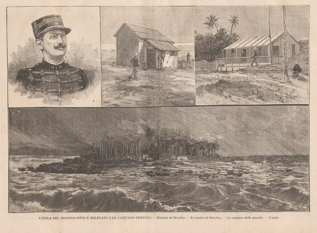 L’Isola del Diavolo dove è relegato l’ex capitano Dreyfus - Ritratto di Dreyfus - Il casotto di Dreyfus - La capanna delle guardie - L’isola
