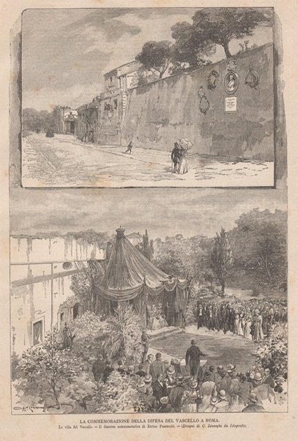 Due vedute: La villa del Vascello - Il discorso commemorativo di Enrico Panzacchi. Testo al retro