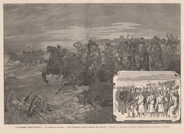 La guerra greco-turca - La ritirata di Larissa - Otto prigionieri turchi trascinati dai partenti