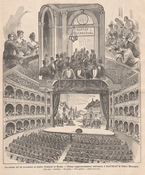 La serata del 26 novembre al teatro Costanzi in Roma - Prima rappresentazione dell’opera I Rantzau di Pietro Mascagni