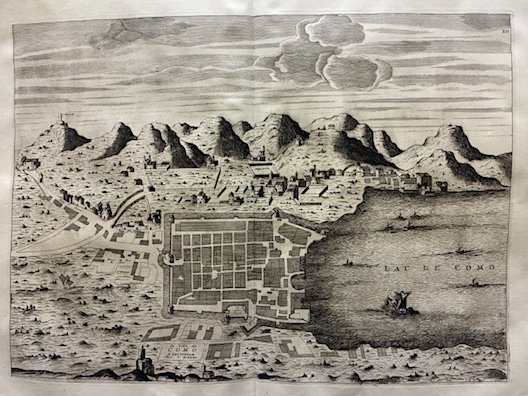 Incisione originale su rame (cm. 52,5x38 più ampi margini bianchi) tratta dalla monumentale opera ‘Nouveau Theatre de l’Italie’, riedizione del ‘Theatrum Civitatum’ pubblicato da Joan Blaeu nel 1663. Esemplare in nitida impressione ed eccellente stato di conservazione.Nel 1672 la tipografia di Blaeu fu distrutta da un incendio e l’editore Mortier rilevò ciò che restava delle lastre di rame (alcune delle quali ancora inedite), aggiunse nuove tavole e ritoccò - seppur con piccole modifiche - buona parte delle vedute originarie.
