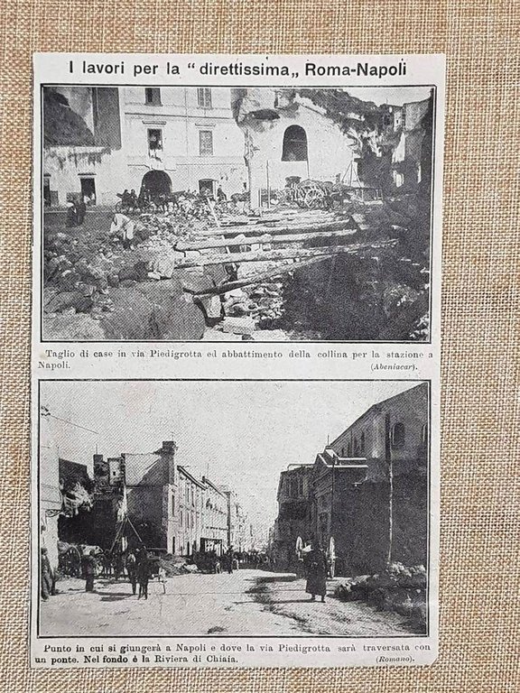 Lavori ferrovia Roma - Napoli nel 1912 Piedigrotta Stazione Riviera di Chiaia
