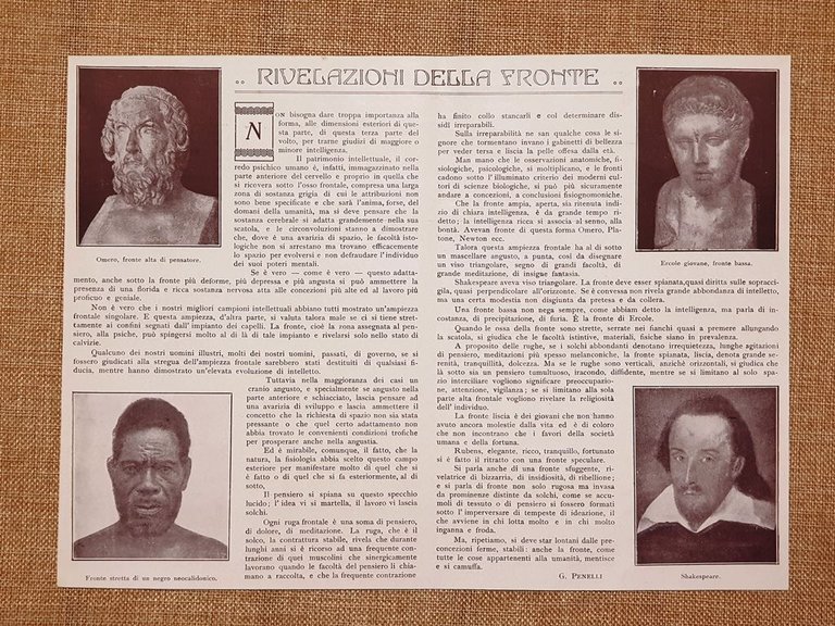 Le rivelazioni che offre la fronte Articolo di G. Penelli del 1931