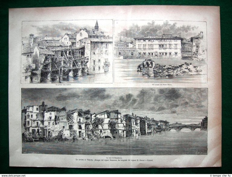 Le Rovine di Verona nel 1882 - La prima casa caduta - Gli avanzi del Ponte Nuovo