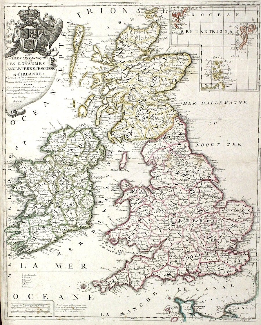 Les isles britanniques ou sont les royaumes d'Angleterre, d'Escosse et d'Irlande divisez en leurs provinces.