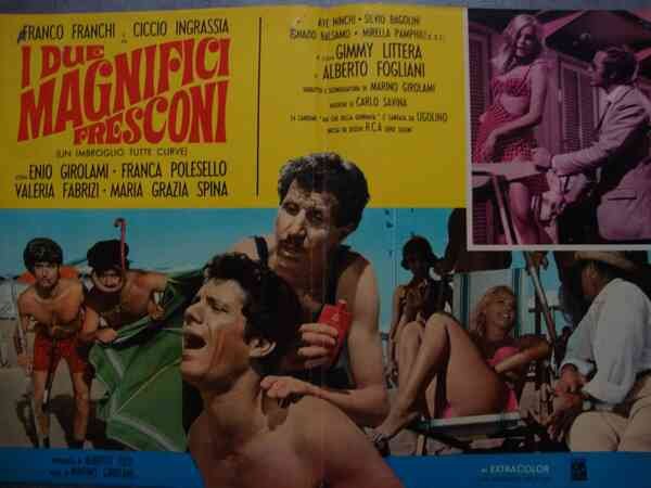 Marino Girolami (regista) Franco Franchi e Ciccio Ingrassia in "I due magnifici fresconi - Un imbroglio tutte curve" Fotobusta cinematografica. Con Enio Girolami, Franca Polesello, Valeria Fabrizi, Maria Grazia Spina (49b/56b).