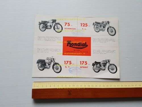 Mondial produzione modelli moto 75 -125 -175 1959 depliant originale italiano