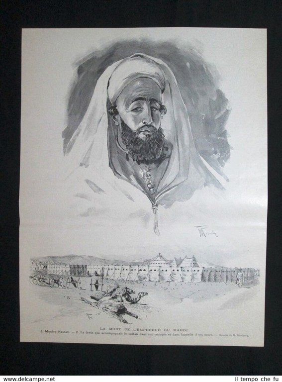 Morte dell’Imperatore del Marocco Mouley Hassan Incisione del 1894