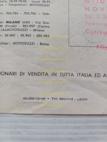 MOTO GUZZI produzione modelli 1956-57 depliant ITALIANO originale