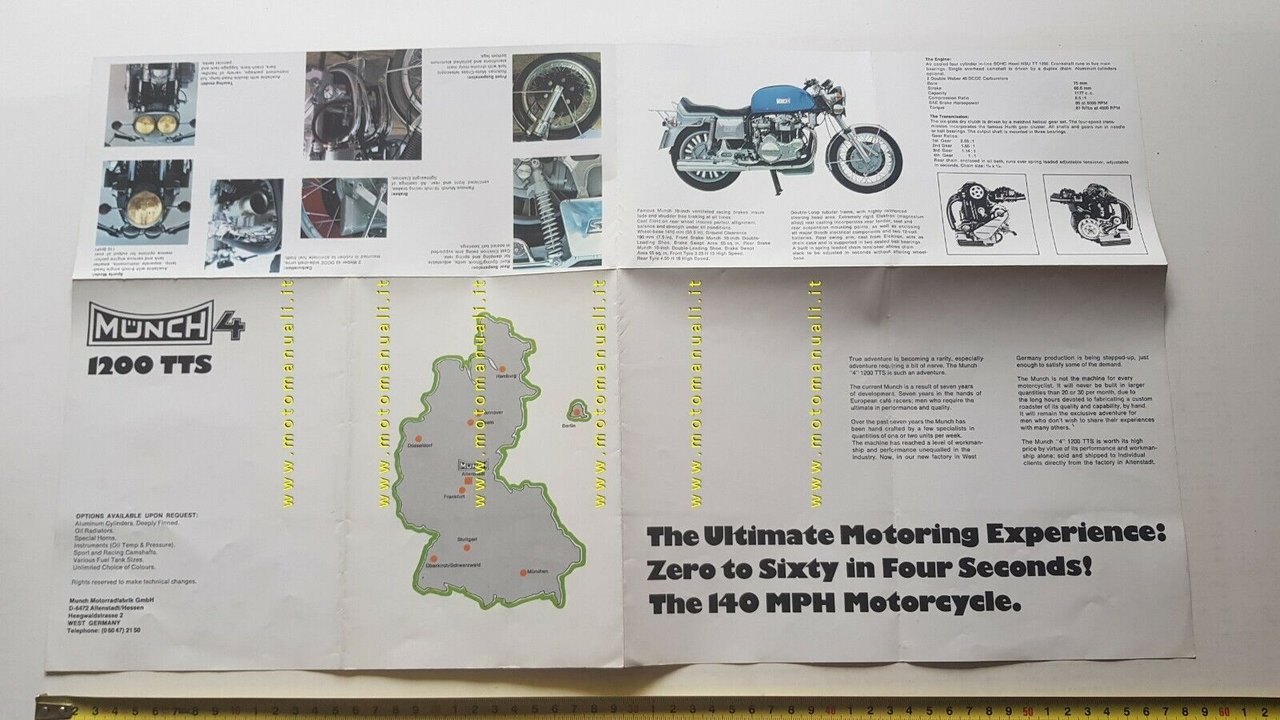 Munch 4 1200 TTS Mammuth 1971 depliant originale brochure ENGLISH TEXT