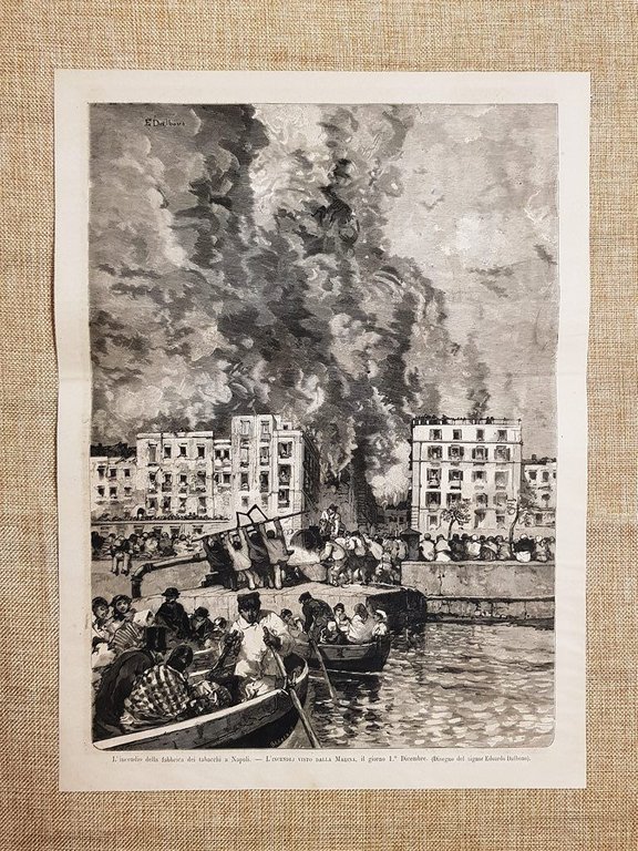 Napoli 1 dicembre 1880 Incendio della fabbrica dei tabacchi Veduta dalla Marina