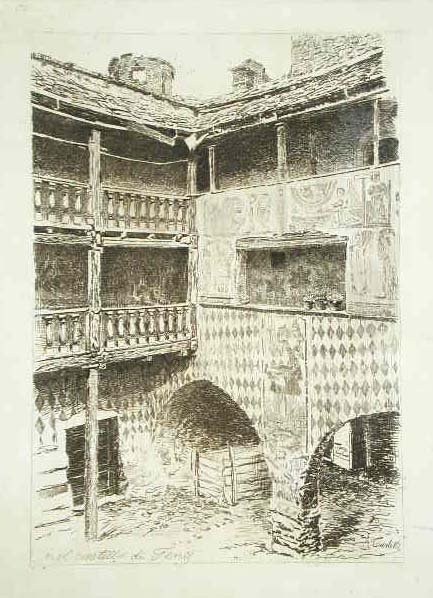 Veduta del cortile interno del castello, stampata con inchiostro bruno