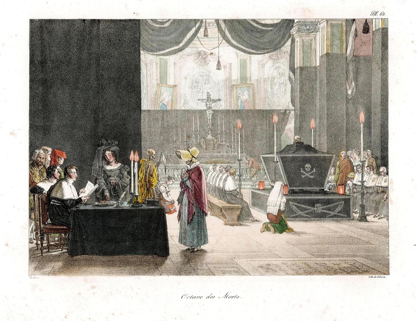 Litografia in coloritura coeva raffigurante l'ottavario dei morti