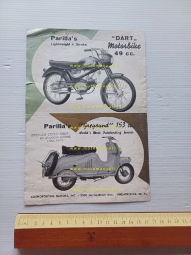 Parilla 49 Dart - Greyhound 153 1958 depliant inglese originale
