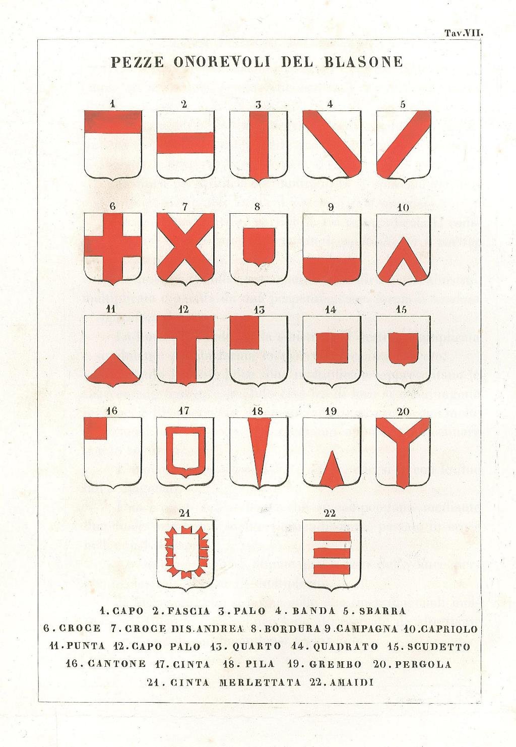 Stemma araldico dei blasoni, finemente colorato a mano all'epoca con vivace acquerellatura a tempera. Inserita in una delle più importanti opere sull'araldica italiana in cui sono descritte ben 459 famiglie. L'opera è composta da bellissime incisioni di stemmi nobiliari in coloritura coeva e descrizioni genealogiche delle più importanti famiglie. Inserita in "Teatro araldico ovvero raccolta generale delle armi ed insegne gentilizie delle più illustri e nobili casate che sisterono un tempo e che tuttora fioriscono in tutta l'Italia. illustrate con relative genealogico-storiche nozioni da L. Tettoni e F. Saladini" Edita in Lodi e Milano pei tipi di Cl. Wilmant e figli dal 1841 al 1851. La stampa è accompagnata da pagine di testo storico descrittivo. Piccole macchie