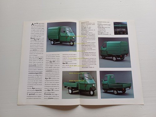 Piaggio Ape 50 anni 90 depliant italiano originale motocarro