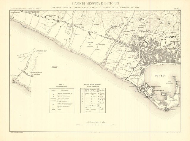 Piano di Messina e dintorni coll’indicazione delle opere eseguite durante l’assedio della cittadella nel 1861