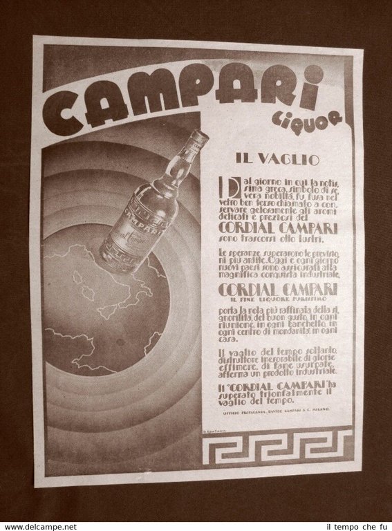 Pubblicità d'epoca del 1920 Campari Liquor Il vaglio Davide Campari & C. Milano