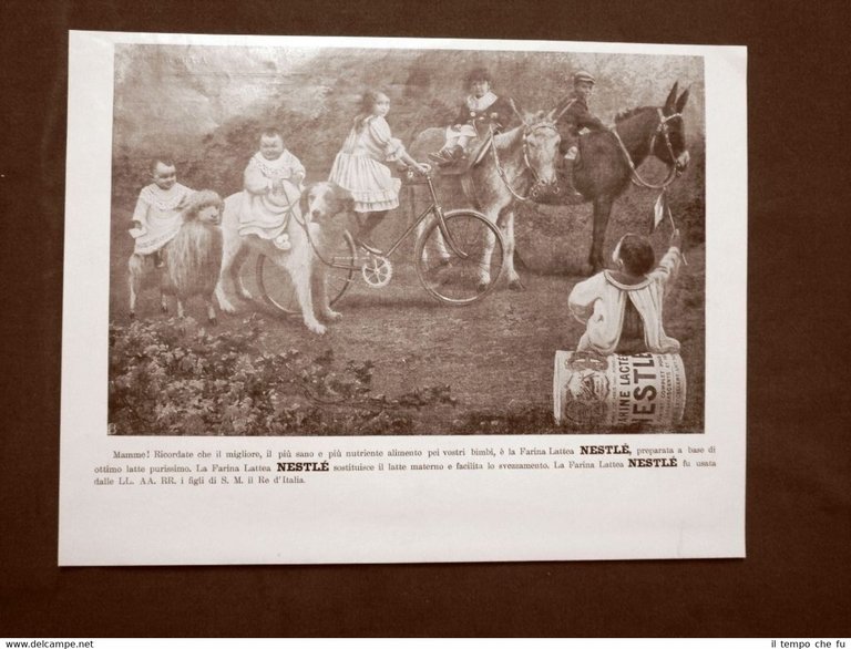 Pubblicità del 1910. .stampa che ha quindi oltre 105 anni! Farina lattea Nestlè Fantasia #4 II1910-056 Dimensioni Cm 27,00 x 19,00 Qualora vogliate delle scansioni migliori contattateci, soddisferemo ogni vostra richiesta. PaypalCarta di creditoBonifico bancario Accuratamente adagiate su un cartoncino e protette da pellicola trasparente rigida,il tutto viene inserito dentro plico di adeguate dimensioni per proteggerne l'integrità.