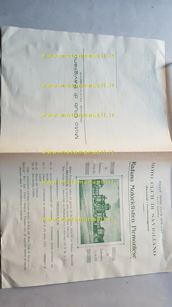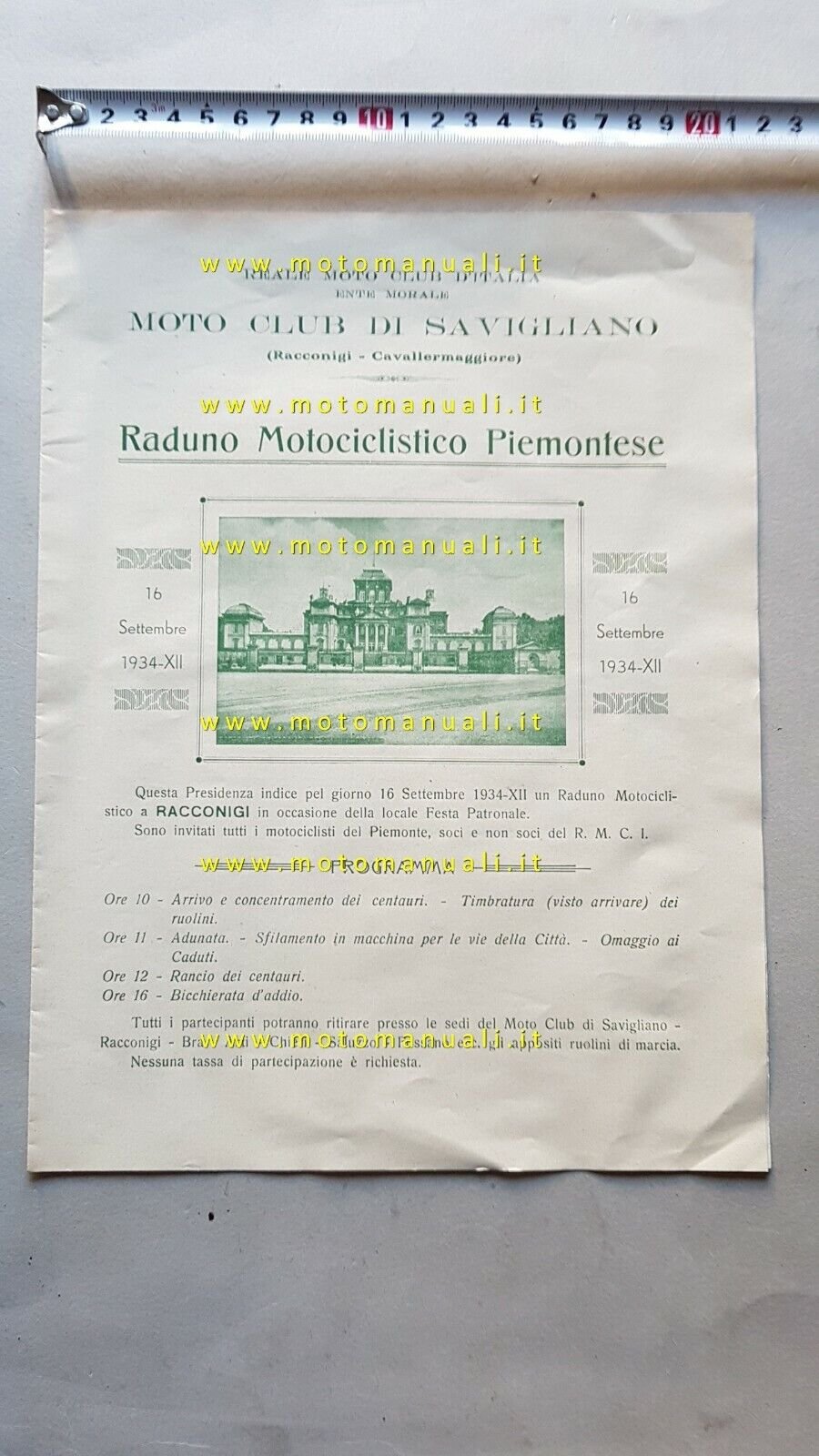 Raduno Motociclistico Racconigi 1934 programma depliant anteguerra brochure