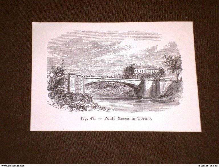 Rara veduta dell'800 Il Ponte Mosca di Torino